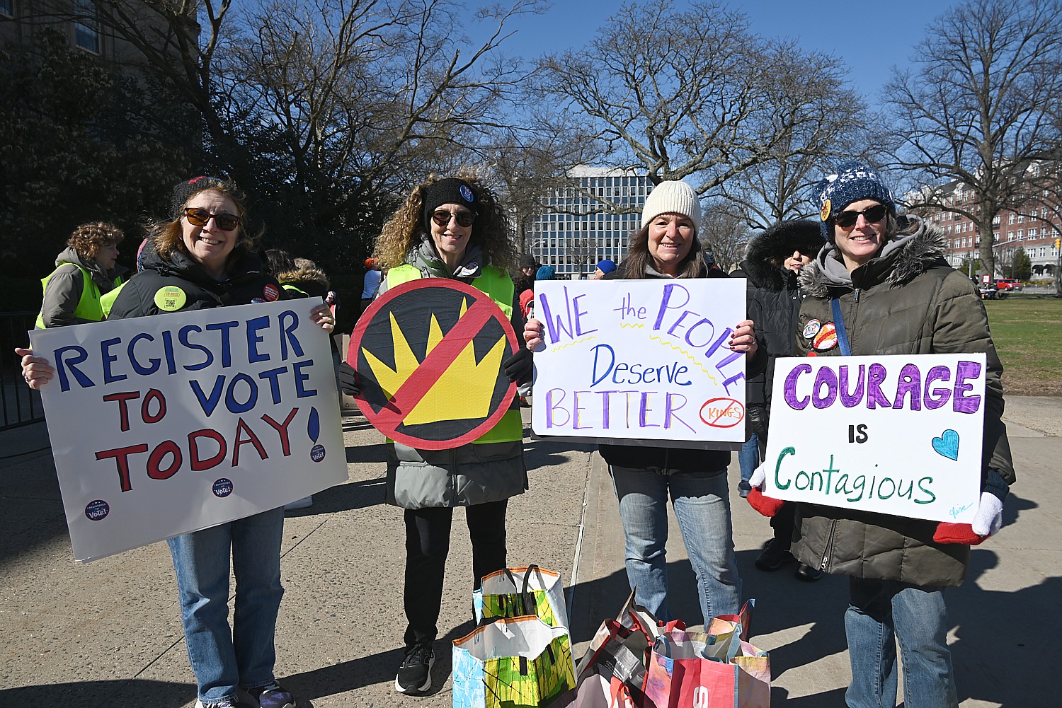 The Mineola Rally was organized together by Engage Long Island, Show Up Long Island and Long Island Network for Change. The League of Women Voters of Huntington is a co-sponsor.