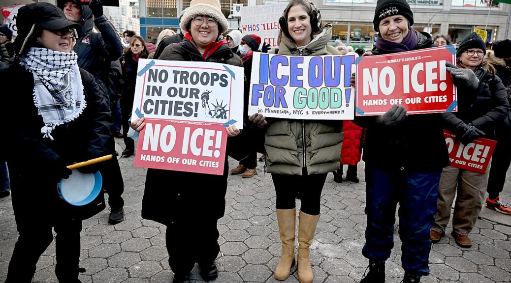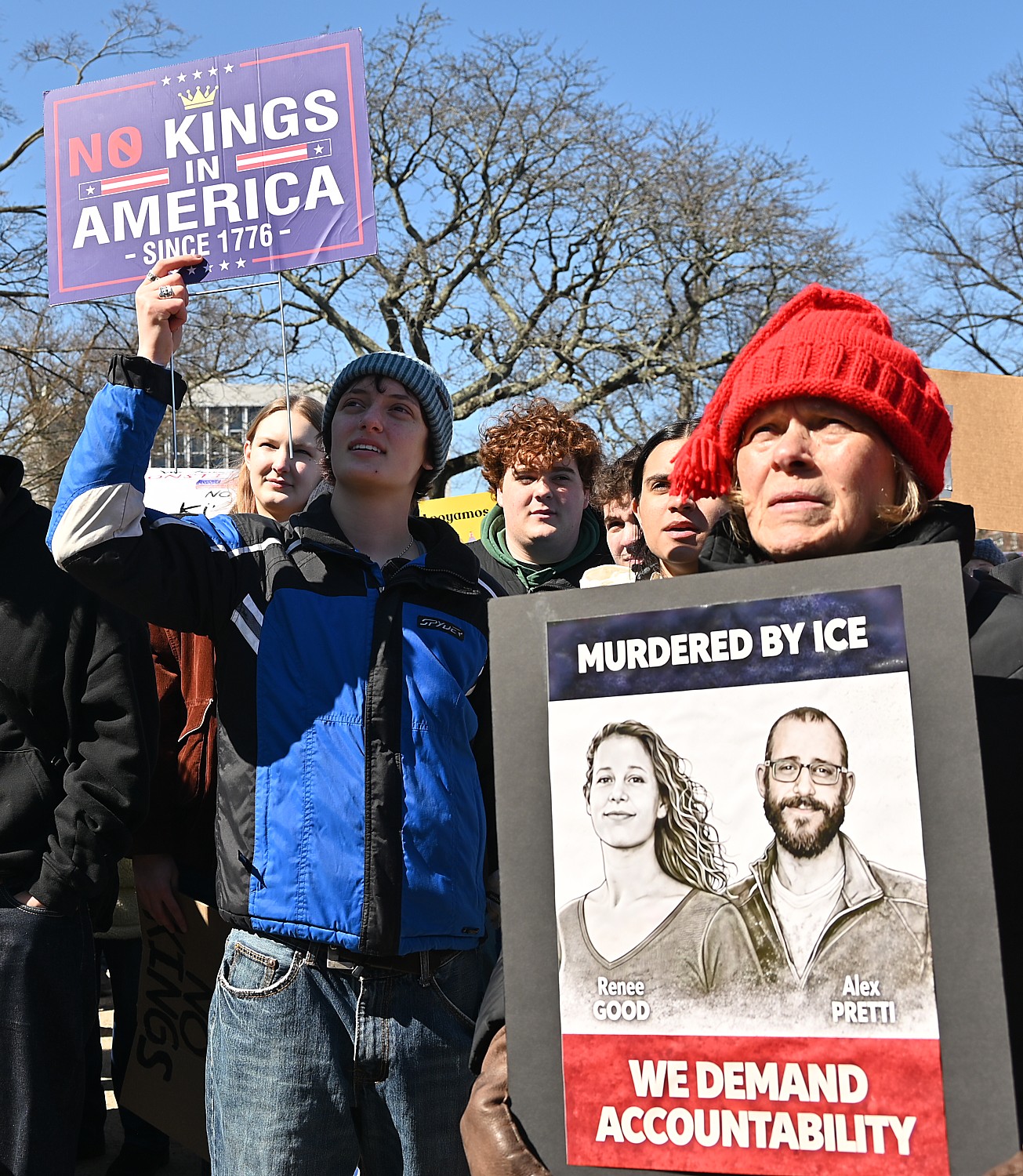 Since October, things have only gotten worse – cruel, masked ICE thugs killing civilians Renee Good and Alex Pretti in the street, children separated and kept in horrific conditions, a war costing $1 billion a day; 2 million who can’t afford health care. “We are here for hope, for the nation and the world we want for our families,” said Engage Long Island organizer Halle Brenner-Perles, lauding the Nassau County high school students who conducted ICE Out walkouts. “The power of people is always stronger than the people in power. Take back America, make it better than ever before. Because that’s what peaceful protesters do.”