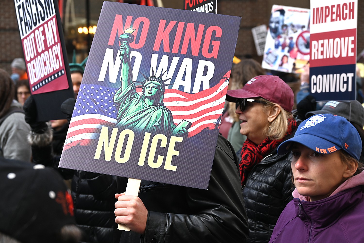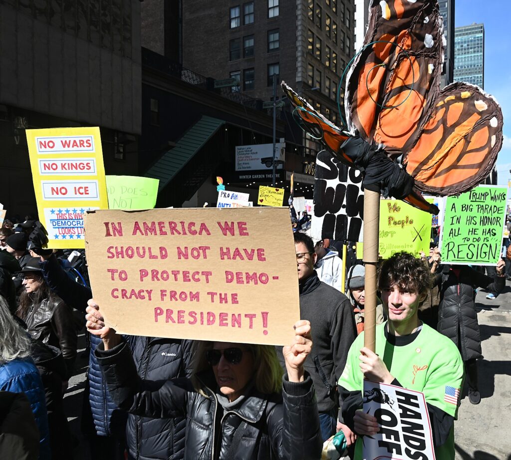More than 100,000 gathered in New York City – they were among at least eight million nationwide at a record 3,300+ protest events in big cities and small hamlets in all 50 states, participating in the nationwide No Kings 3, the largest single day peaceful protest in America’s 250 years since achieving independence from monarchy.